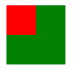 붉은색 박스가 초록색 박스보다 마크업에서 먼저 나오기 때문에 일반적인 흐름이라면 먼저 그려져야 하지만 z-index 속성이 높기 때문에 더 앞쪽에 표시된다.