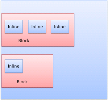 블록은 다른 블록 아래 수직으로 배치되고 인라인은 수평으로 배치된다.
