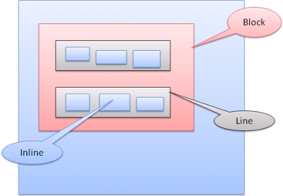 인라인 박스는 라인 또는 "라인 박스" 안쪽에 놓인다. 라인은 적어도 가장 큰 박스만큼 크지만 "baseline" 정렬일 때 더 커질 수 있다. 이것은 요소의 하단이 다른 상자의 하단이 아닌 곳에 배치된 경우를 의미한다. 포함하는 너비가 충분하지 않으면 인라인은 몇줄의 라인으로 배치되는데 이것은 보통 문단에서 발생한다.
