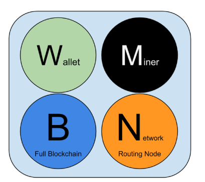 Bitcoin makes the distinction of 4 key functionalities that every node in the network is a combination of: